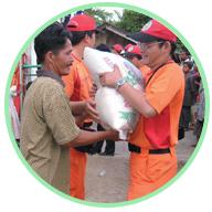 An ihrem Wirkungsort in Banda Aceh angekommen, hängten sie Masters Foto auf und spielten Ihre Kassette mit Buddha-Gesängen. Und erstaunlicher Weise spürten sie, nachdem sie das Foto angebracht hatten, dass die Atmosphäre am Ort viel besser wurde und der durchdringende Verwesungsgeruch ebenfalls verschwand. Es war, als ob eine Art Schutzschild die Eingeweihten vom der äußeren Umgebung trennen würde. Das Hilfsteam teilte sich dann in zwei Gruppen. Eine behandelte und kleidete die verletzten Opfer, und die andere verteilte unter Leitung vom Roten Kreuz die Hilfsgüter und verschaffte sich einen Überblick, was die Opfer in medizinischer Hinsicht am dringendsten brauchten. Gemeinsam mit den indonesischen Eingeweihten besuchte das Ausgabeteam provisorische Lager und Unterkünfte in Banda Aceh und versorgte sie mit Kleidung, Hausschuhen, Dauergebäck, Trinkwasser, Reis, Instant Nudeln, Zahnbürsten, Zahnpasta, Seife, grünen Bohnen, Moskitonetzen, Unterwäsche und weiblichen Hygieneartikeln.